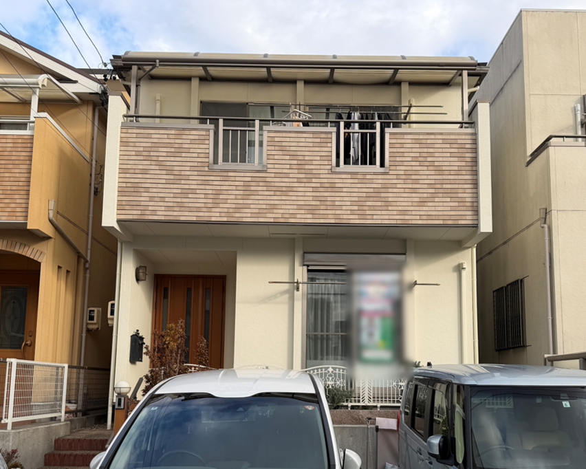 施工前は、外壁・屋根ともに経年劣化によるくすみや不安要素がありましたが、施工後は外壁の塗料はクリーム色を使用したことで明るく清潔感のある印象に生まれ変わりました。クリーム色の外壁が建物全体をやさしい雰囲気にまとめ、屋根のシェイドブラウンが引き締まった印象を与えています。機能面でも、防水性・断熱性が向上し、見た目だけでなく安心して長く住める住まいへと改善されました。