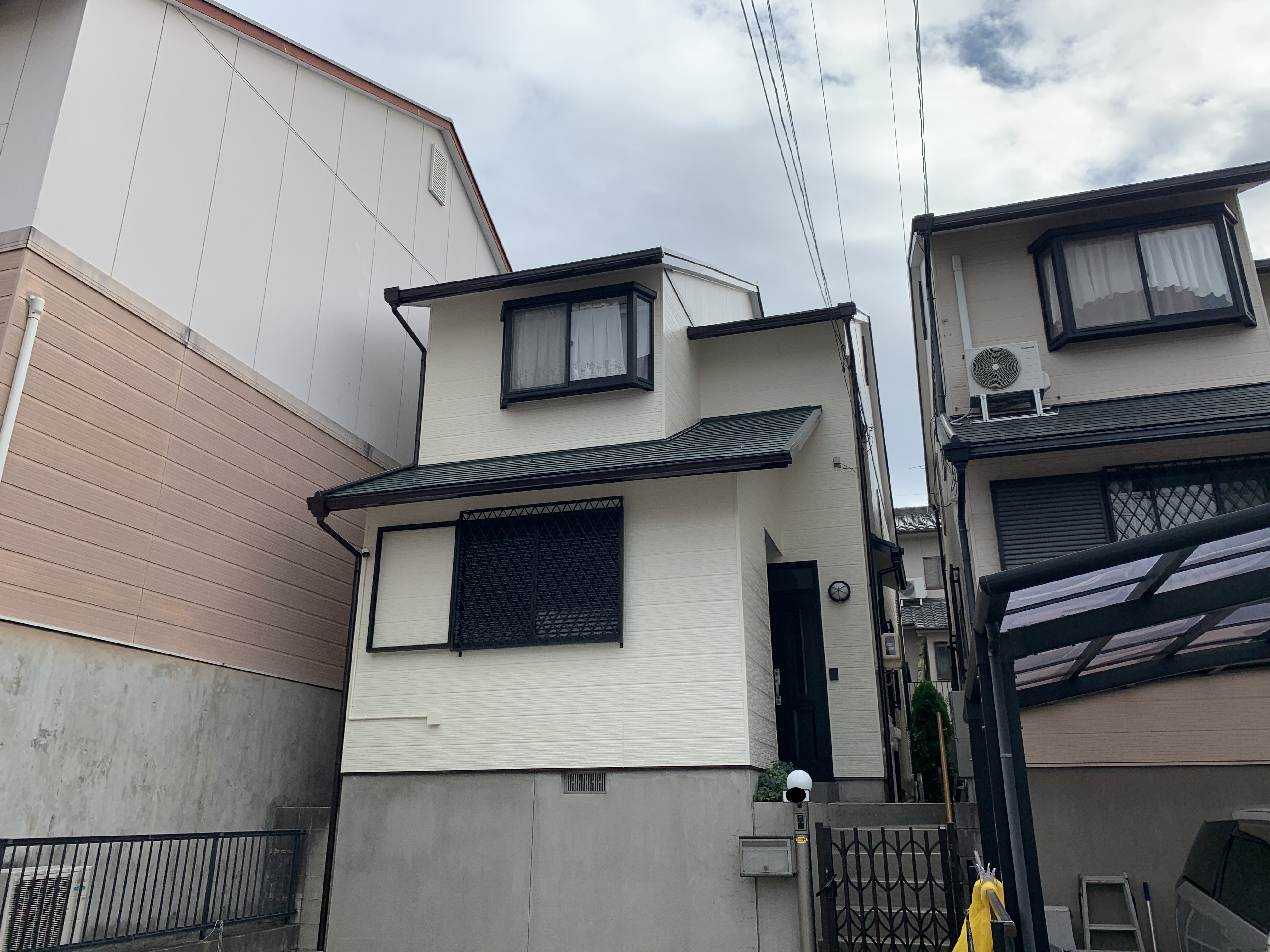 築年数も20年近くということでなるべく2回目の塗り替えを行わなくても良いように、高耐久性の塗料を施工させていただきました。ただ、耐久性のよい塗料を利用するだけでは意味がないので、下地処理を念入りに行いシーリングも350m超で施工しました。またシーリングにも高耐久性のオートンイクシードにて使用し施工しました。