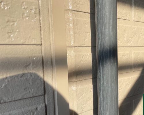築35年が経過していることもあり、建物全体に経年劣化がはっきりと見受けられる状態でした。外壁・屋根ともに長年の雨風や紫外線の影響を受け保護機能が低下していました。特に外壁のサイディングにはチョーキング現象が顕著に現れており、手で触れると白い粉が付着するほど塗膜の劣化が進行していました。また、全体的に色あせが進み雨だれや黒ずみといった汚れの蓄積も目立ち、建物の印象も古く感じられる状態でした。さらに、目地部分のシーリング材についても、弾力が失われて硬化している箇所や、ひび割れ・剥離が確認され、隙間から雨水が浸入する恐れがある状況でした。このまま放置すると、外壁内部や下地材への影響も懸念されるため、建物全体の防水性が著しく低下していると判断される状態でした。