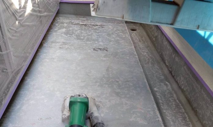 ライニング(ガラスマット+FRP樹脂) 施工中