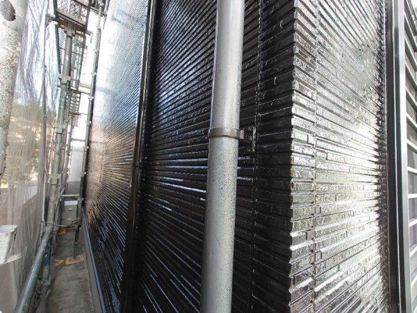 全体を真っ黒に仕上げ、お施主様のご希望通り、夜の景観に溶け込む落ち着いた印象の外観へと生まれ変わりました。
