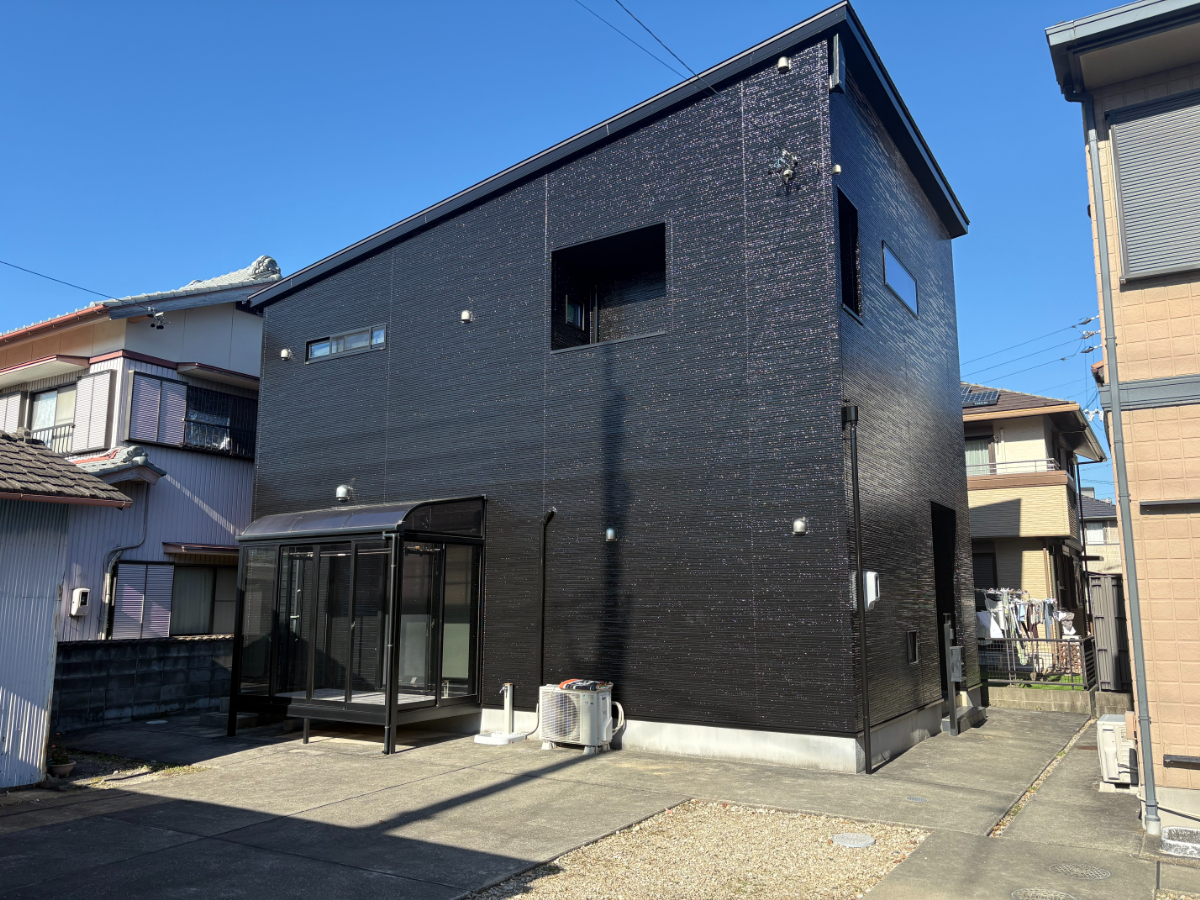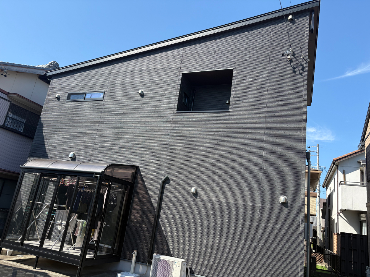 全体を真っ黒に仕上げ、お施主様のご希望通り、夜の景観に溶け込む落ち着いた印象の外観へと生まれ変わりました。